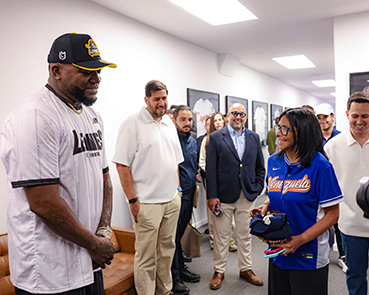 Presidenta (E) Delcy Rodríguez encabeza encuentro con leyendas del béisbol para lanzamiento de la Liga Monumental