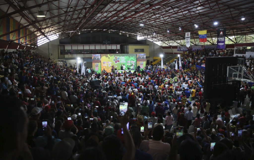 En un ambiente festivo, con merengue campesino, el presidente de la República Bolivariana de Venezuela, Nicolás Maduro Moros, junto a la Primera Combatiente, Cilia Flores, el gobernador del estado Lara, C/G Luis Reyes Reyes, el alcalde de Barquisimeto, Luis Jonás Reyes, el ministro del poder Popular para las Comunas, Ángel Prato, el ministro del Poder Popular para la Agricultura Productiva y Tierras, Julio César León Heredia, participó en el impulso del Plan Comunal del Café 2025, llevado a cabo en el Gimnasio Napoleón Rodríguez, ubicado en Barquisimeto, estado Lara.