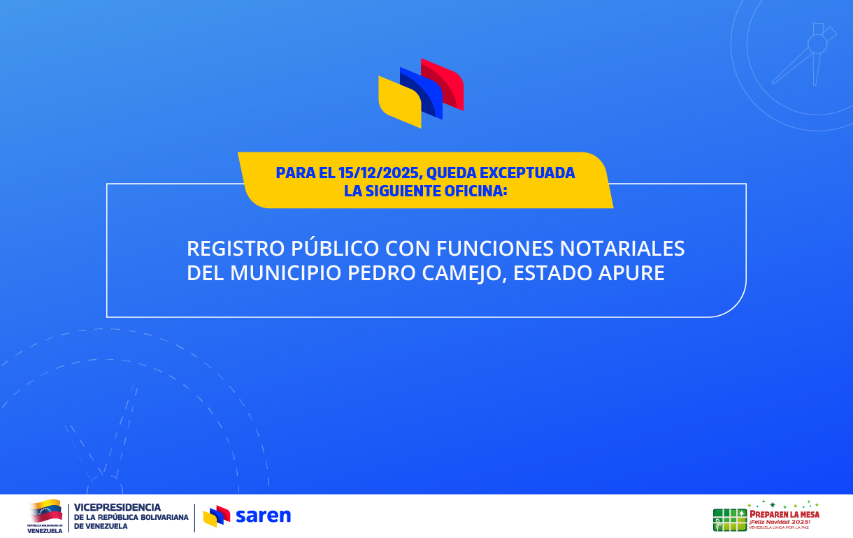 El Servicio Autónomo de Registros y Notarías (Saren), informa a sus usuarios y usuarias que no ha habido incremento en sus tasas, y que se mantienen vigentes las publicadas en la Gaceta Oficial nro. 42.301 del 20 de enero de 2022. Esto debido a que recientemente...