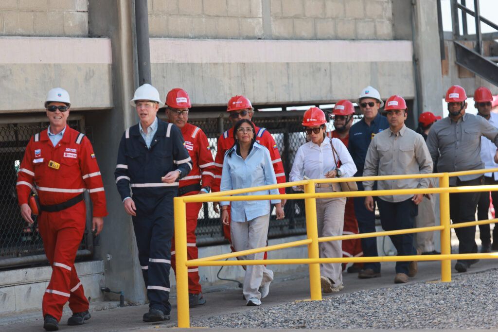 Un recorrido en las instalaciones del Mejorador de Petróleos de Venezuela (Pdvsa) Petropiar realiza este jueves la presidenta encargada de la República Bolivariana de Venezuela, Delcy Rodríguez, junto al secretario de Energía de Estados Unidos, Chris Wright, y autoridades del sector petroquímico.