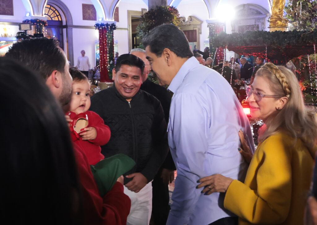 En una concurrida cena navideña llevada a cabo en el Palacio de Miraflores con el pueblo venezolano, el Jefe de Estado, Nicolás Maduro Moros, junto a la Primera Dama, Cilia Flores, dio un mensaje de paz y tranquilidad al país a escasos minutos de la llegada del Niño Dios.